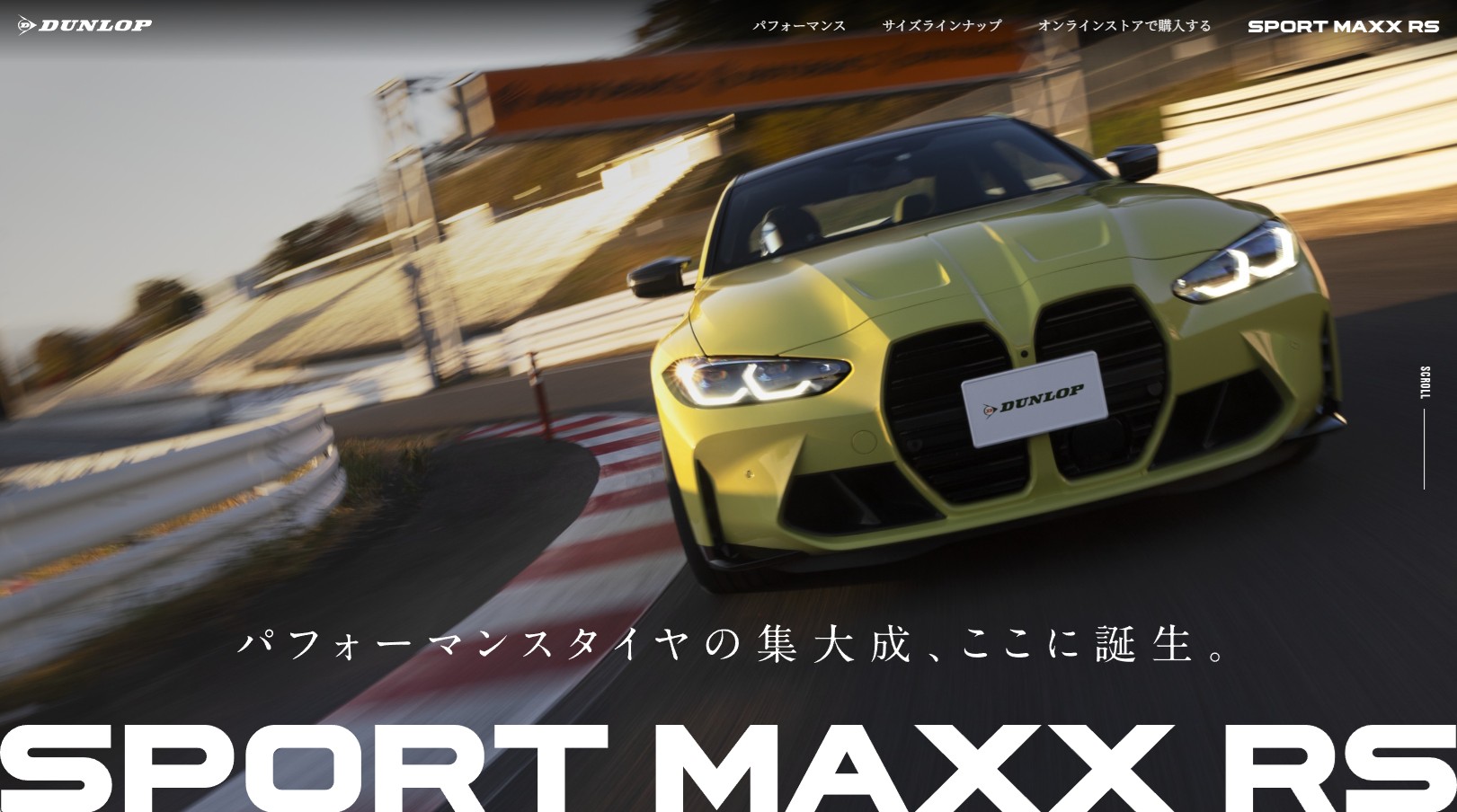 レスポンシブ&派手なDUNLOP SPORT MAXX RSのカタログページ