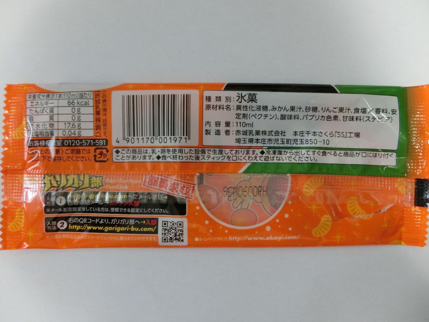 みかんが爽やかでおいしい。ガリガリ君は冬でもおいしいけど、やはり夏に食べたい味ですね。かき氷感が強いからかな。