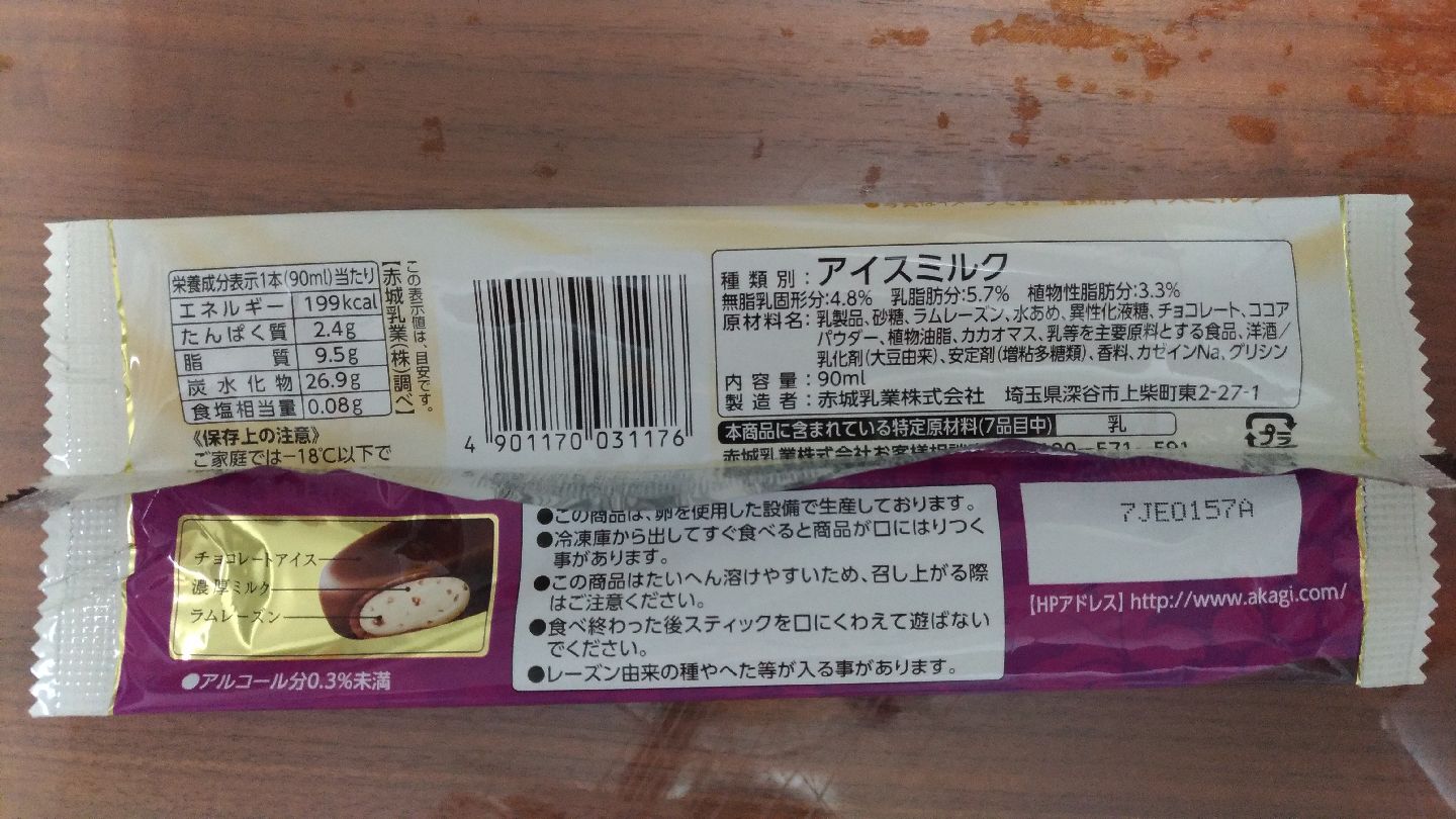 ラムレーズンと中のバニラアイスの相性が非常に良く、 外側もチョコレートコーティングではなく、 ちょいビター気味のチョコレート「アイス」のため、 くどくならずおいしいです。