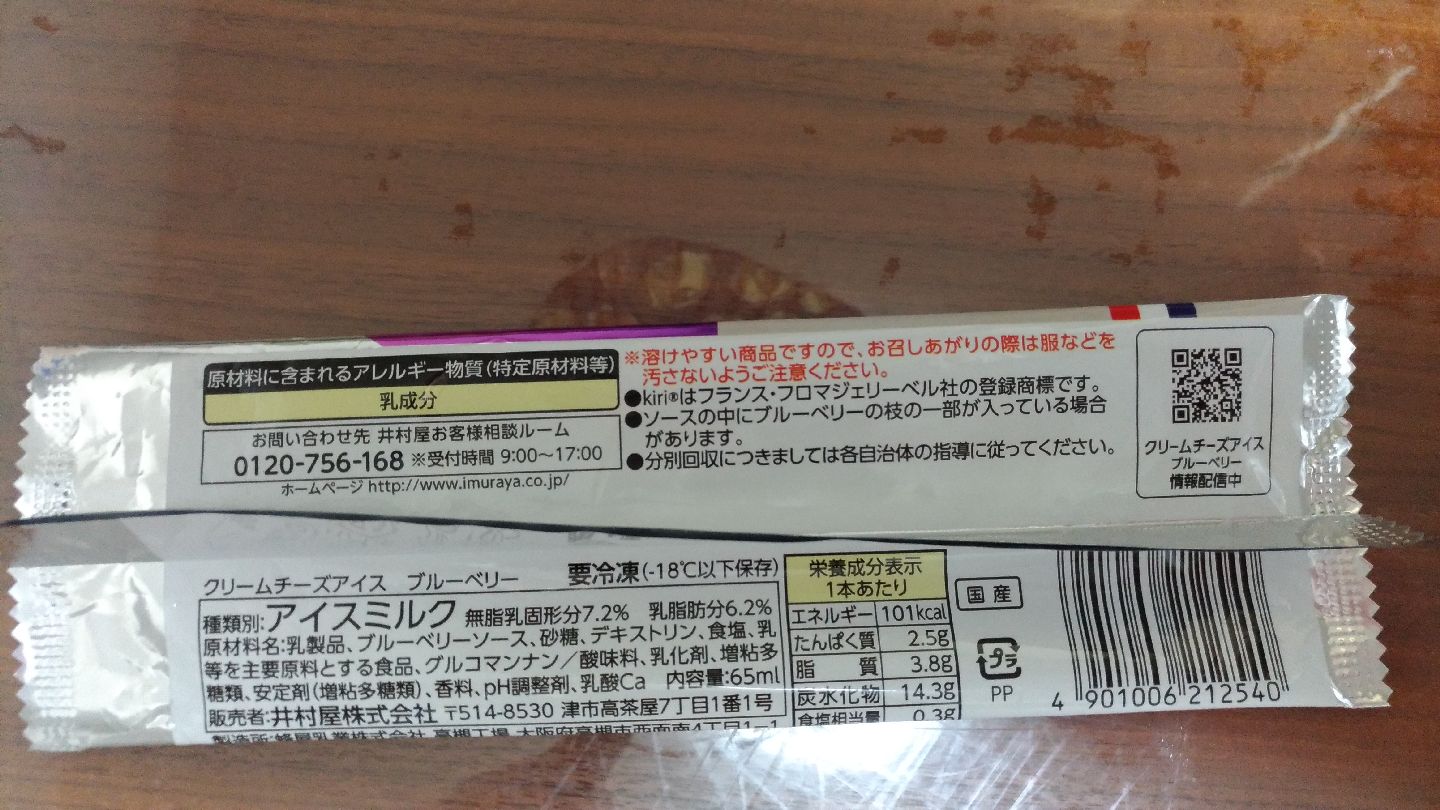 クリームチーズで有名な kiri の名を冠するだけあって、しっかりチーズの味でおいしいです。 組み合わせとしては別に悪くないですけど、なんでブルーベリー味?
