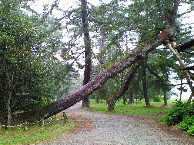 観光協会も気づいているのか、松林の退屈さをなんとかしようと道ばたにアームストロング砲を置いたり、変わった形の松に名前を付け(夫婦松など)たり、地元の伝承を事細かに語る看板を立てたりと、頑張ってます。