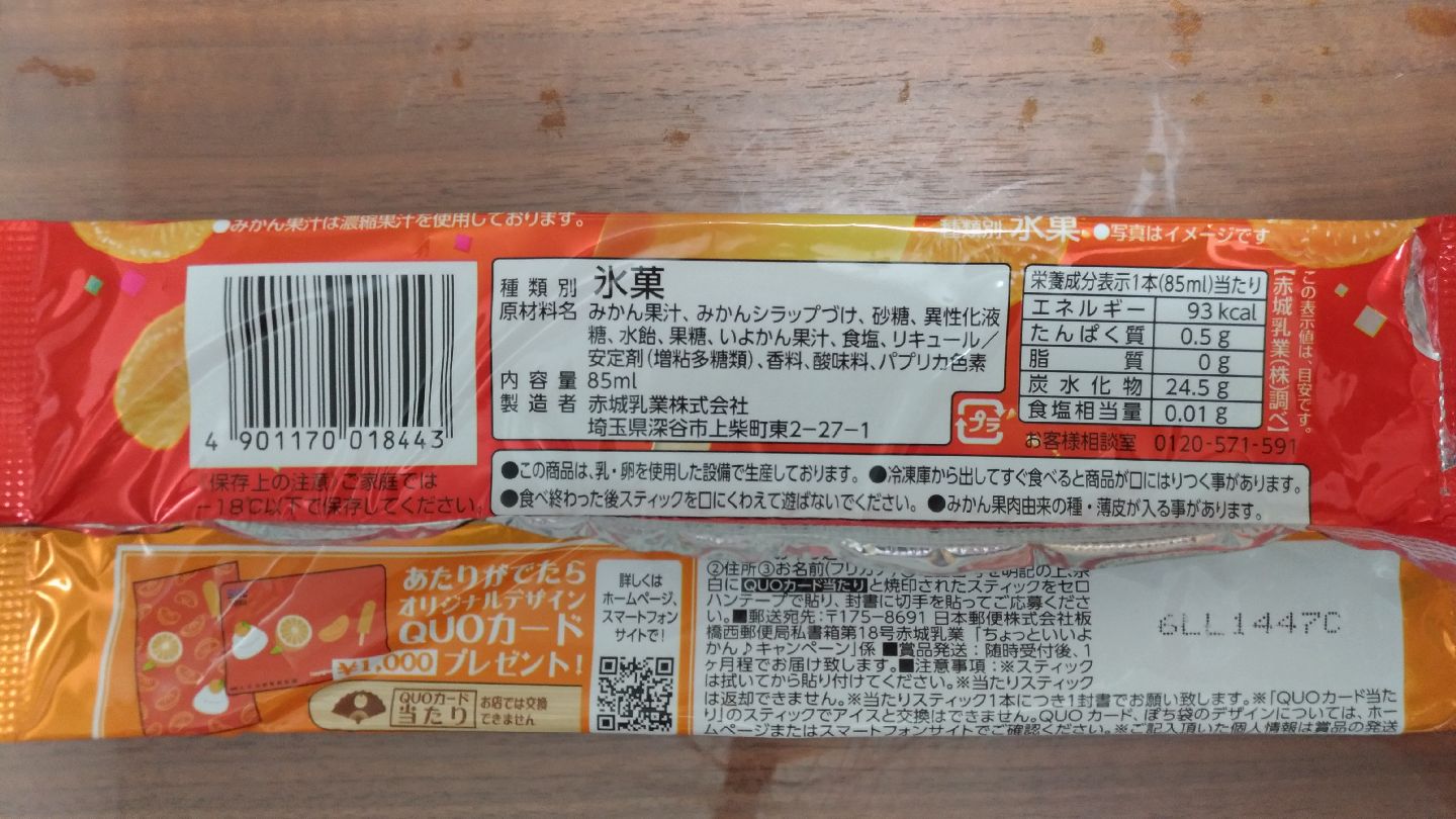 みかんが爽やかでおいしい。ガリガリ君は冬でもおいしいけど、やはり夏に食べたい味ですね。かき氷感が強いからかな。