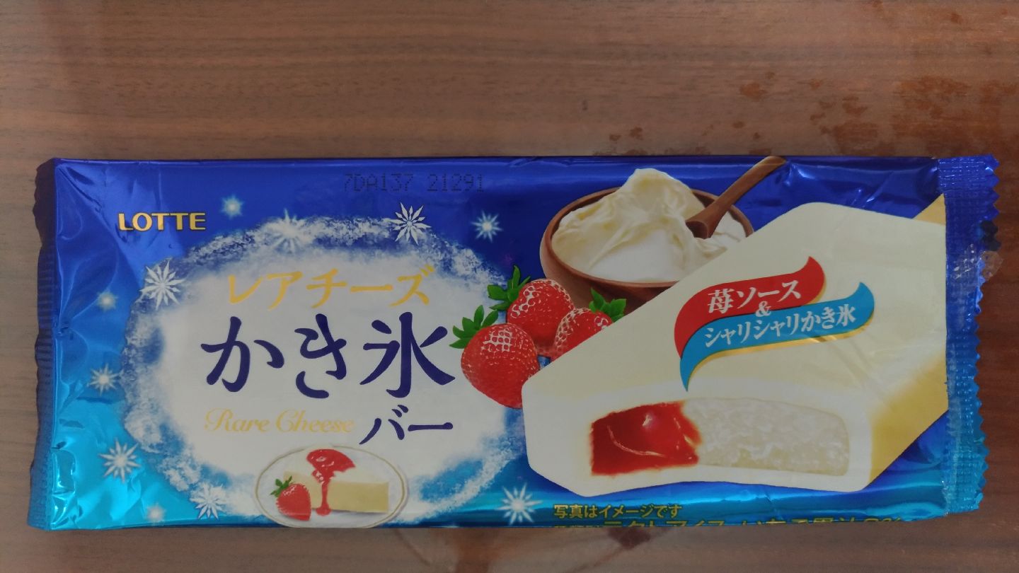 レアチーズは主に外側のアイス。中心部はかき氷とイチゴがメインです。 チーズ系のアイスは濃い味が多いですが、このアイスはかき氷に合わせているのか、ちょっと薄味に感じました。
