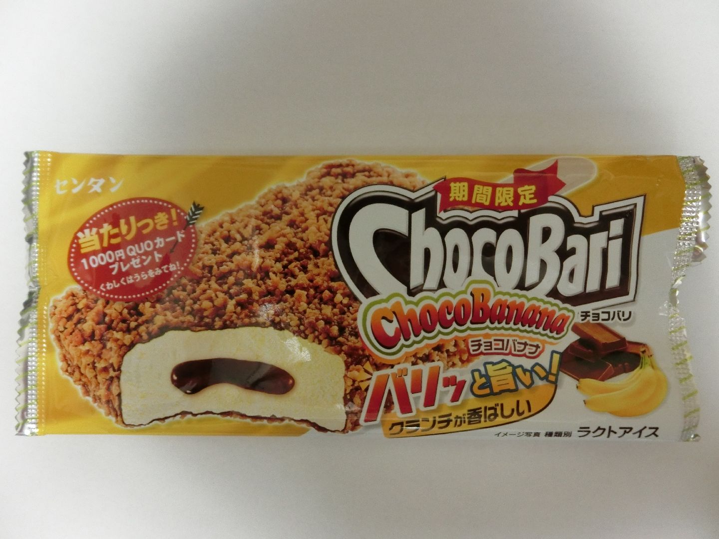 チョコバリのバニラアイスをバナナ風味に、アイスにチョコレートソースを入れた、非常に濃い味に仕上がっています。 個人的にはこっちの方が好き。