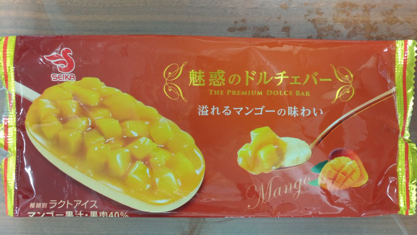 袋+別容器に入っていて、棒付きアイスとしては珍しい包装なのも特徴です。輸送の衝撃で凍ったマンゴーが取れてしまうのかな?